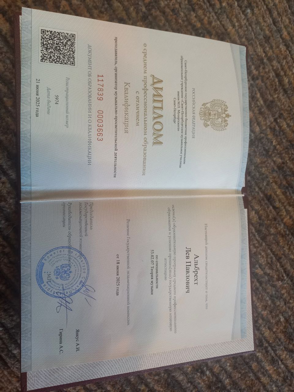 -Преподавательский стаж - 2 года. Даю частные уроки, также проходил практику в Санкт-Петербургской школе имени Н. А. Римского-Корсакова.