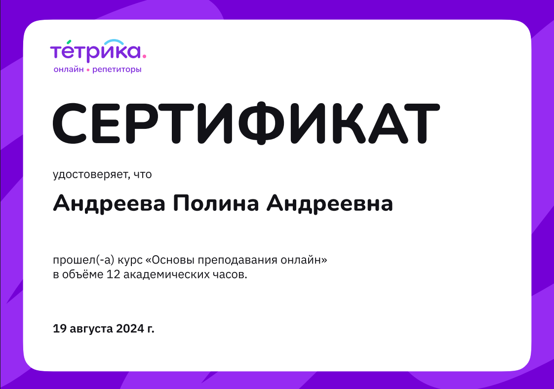 На уроках мы разбираем реальные экзаменационные ловушки, учимся быстро находить правильный алгоритм и экономить время на тесте. Я показываю не только «что учить», но и как мыслить так, чтобы получить высокий балл. Использую интерактивные методики (разбор реальных заданий, образовательные игры и лайфхаки) Помощь в развитии уверенности и снятии стресса перед экзаменами....