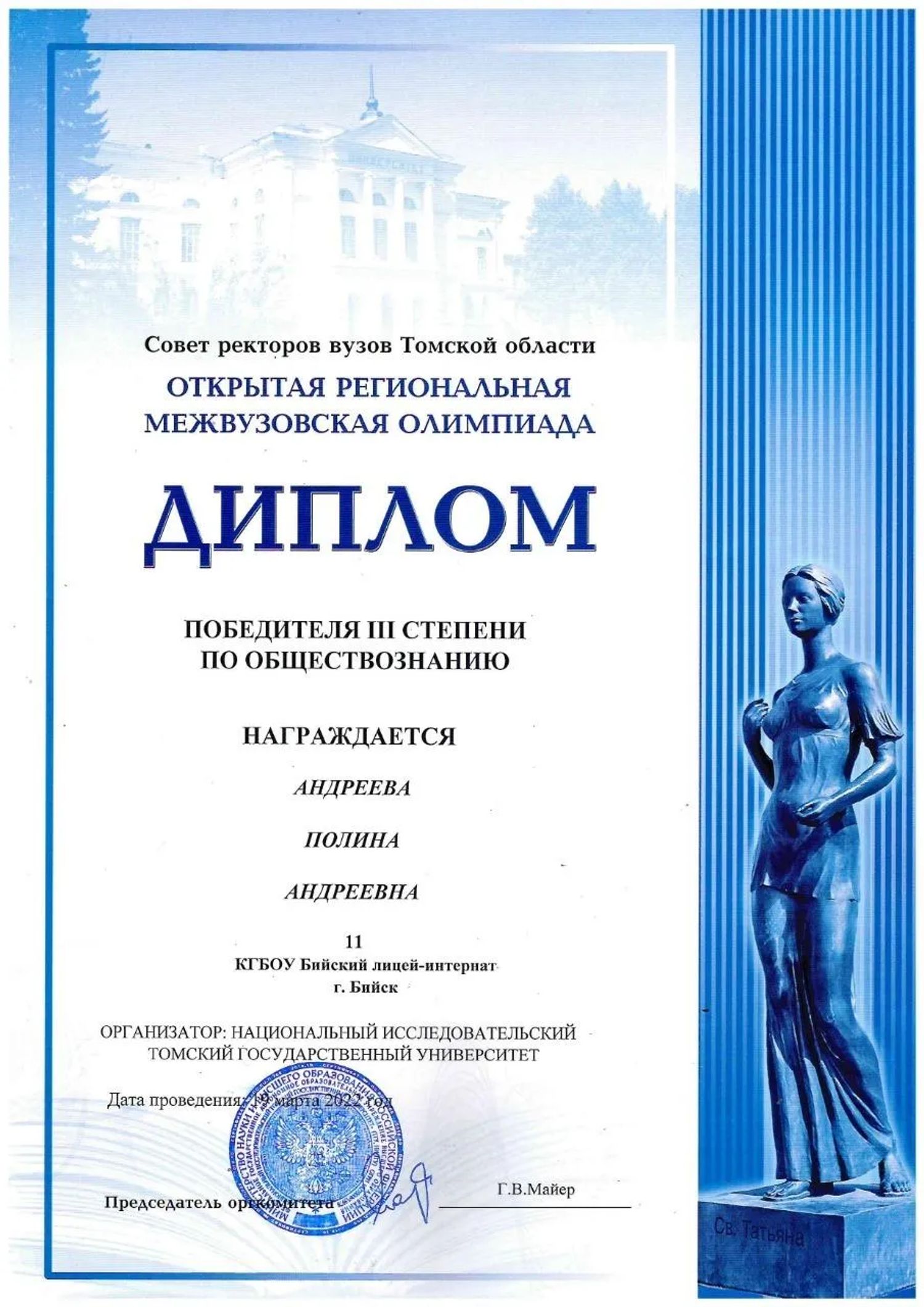 Дополнительная информация: Я получила 96 баллов по обществознанию на ЕГЭ. Призёр олимпиад регионального, всероссийского и международного уровней.