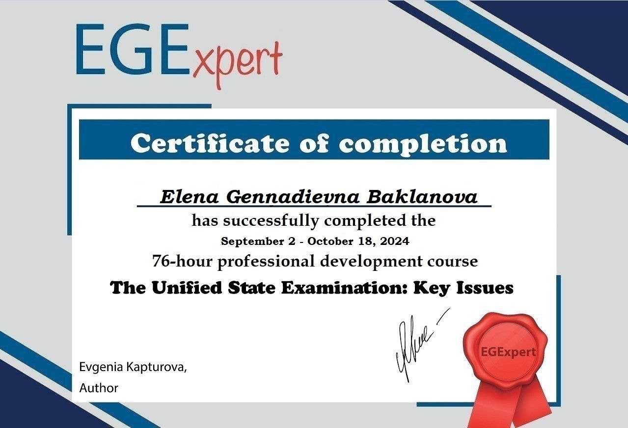 Дополнительная информация: Прошла курсы профессиональной подготовки к ОГЭ и ЕГЭ.