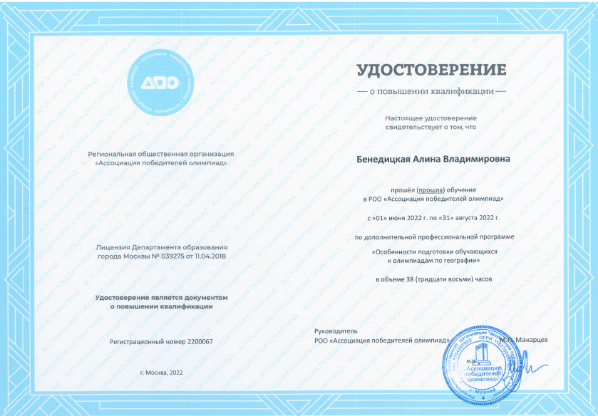 Дополнительная информация: Школьный преподаватель высшей квалификационной категории.