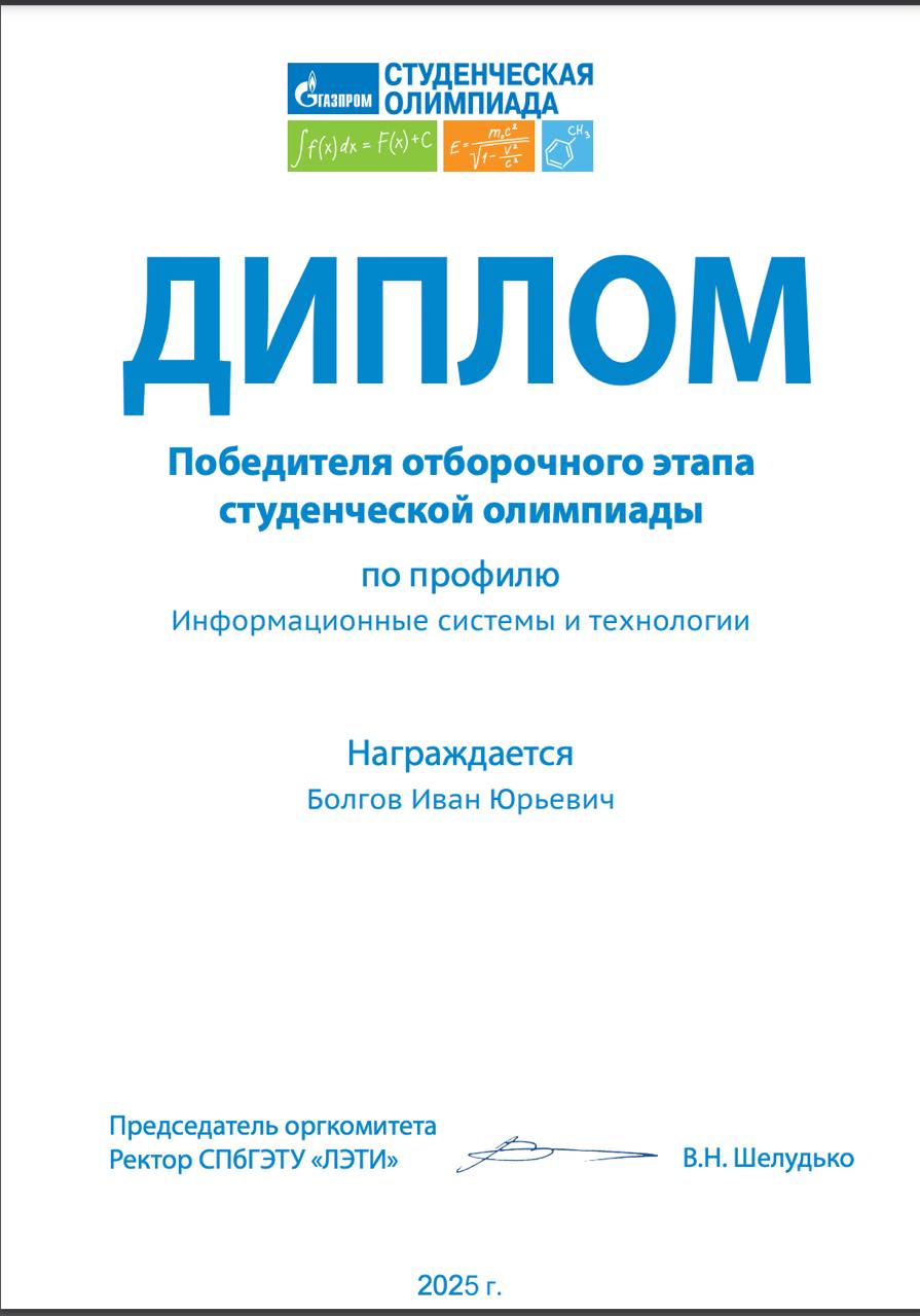 - Образование: Высшая Школа Экономики, «Прикладная математика и информатика», 3 курс бакалавриата.