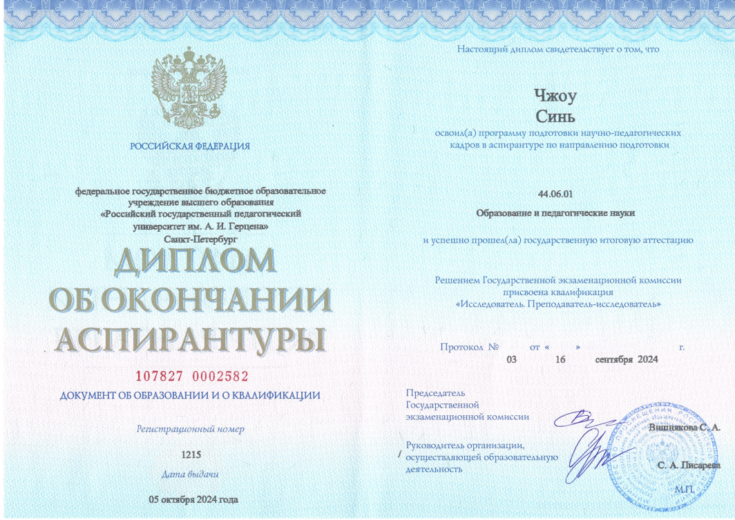 РГПУ имени Герцена, педагогическое образование, аспирантура.