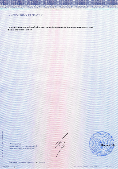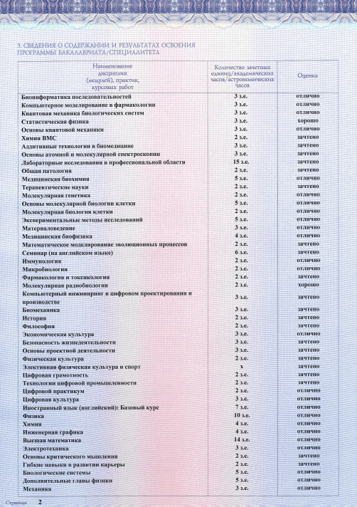 Образование: Санкт-Петербургский Политехнический Университет Петра Великого, "Биотехнические системы и технологии", бакалавр, 2025 год.