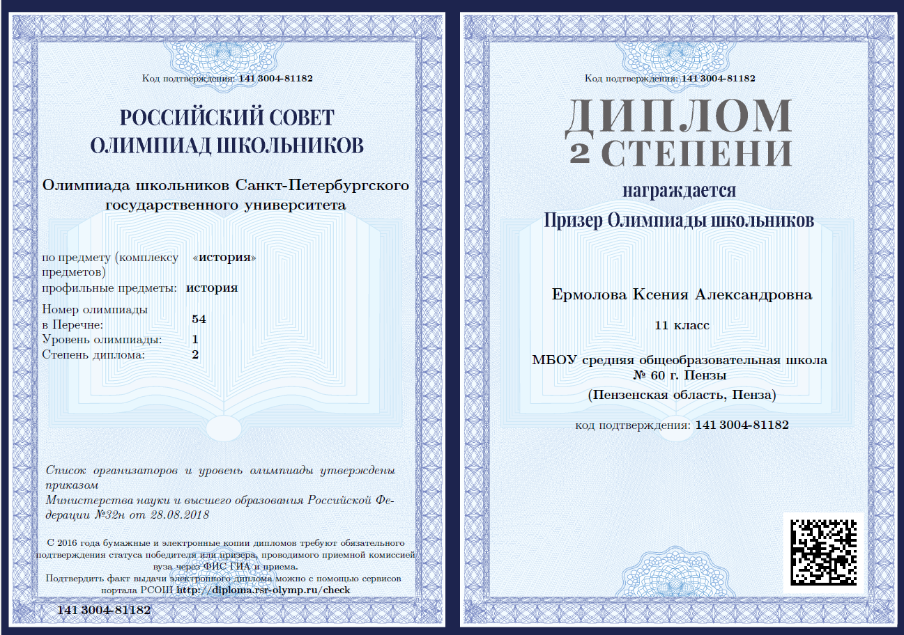 🎓 Призер олимпиады СПбГУ по истории (1 уровень)