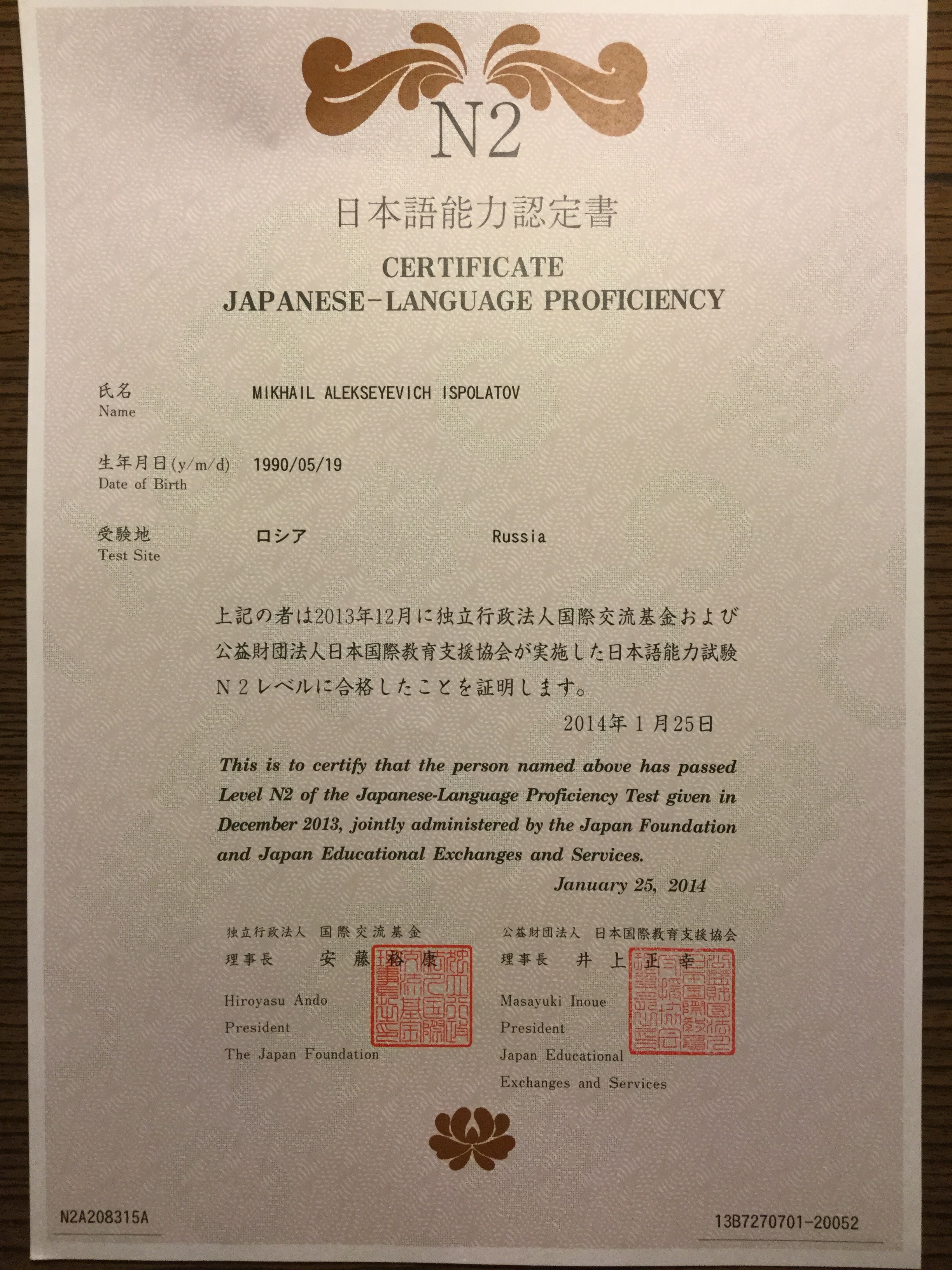 Японским языком заболел в 15 лет и с тех пор изучил его до уровня JLPT2. Имею подтверждающий это сертификат. Готовлю к сдаче экзамена до уровня JLPT3, помогаю с основами, даю грамматическую базу. В японский очень сложно войти самостоятельно, поэтому очень хорошо, когда есть знающий своё дело проводник.