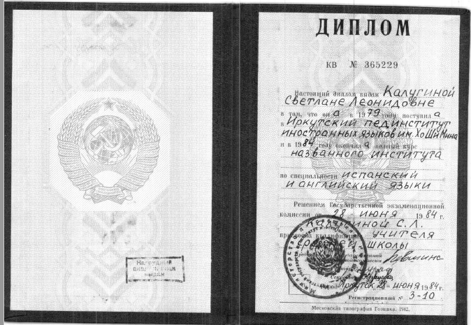 Образование: Иркутский Педагогический Институт Иностранных Языков имени Хо Ши Мина, английский, испанский языки, специалист, 1984 год.