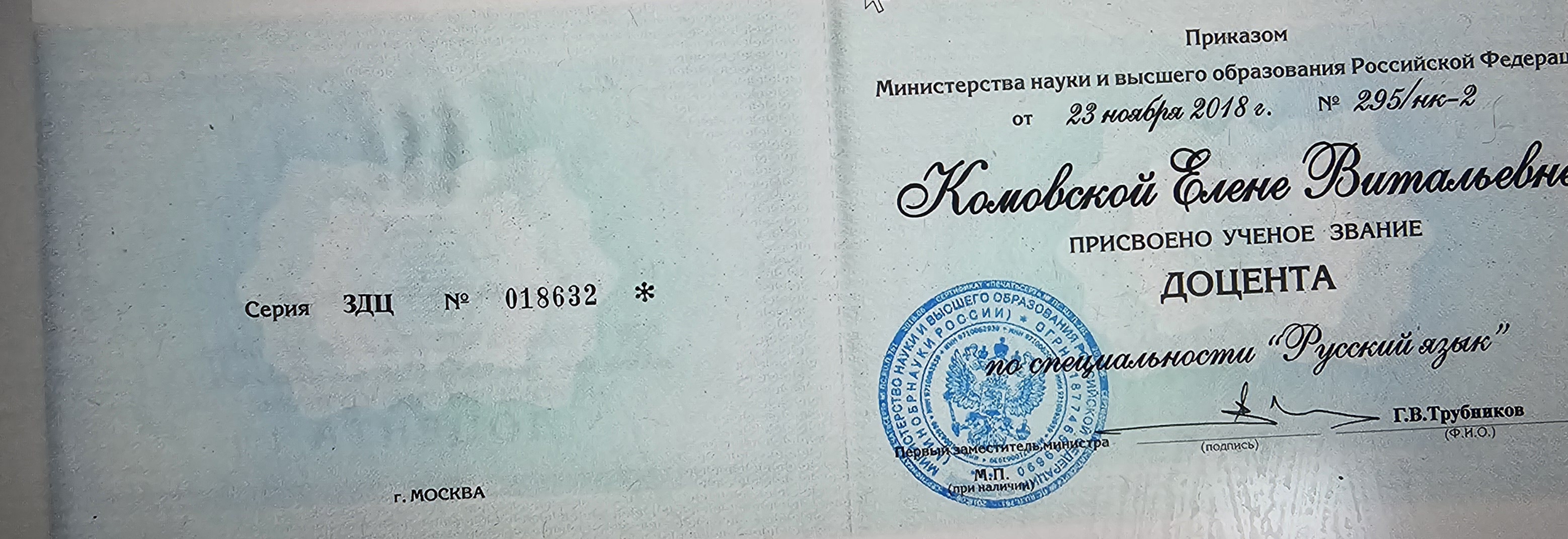 Доцент, 2018 год.