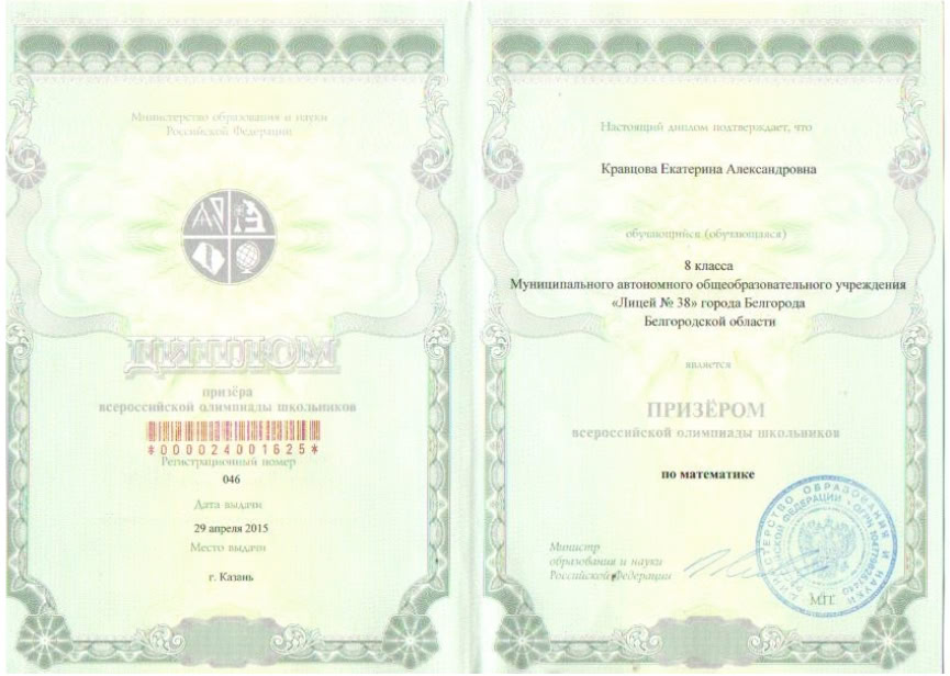 Дополнительная информация: Призёр финала Всероссийской олимпиады школьников по математике, выпускница СУНЦ МГУ.