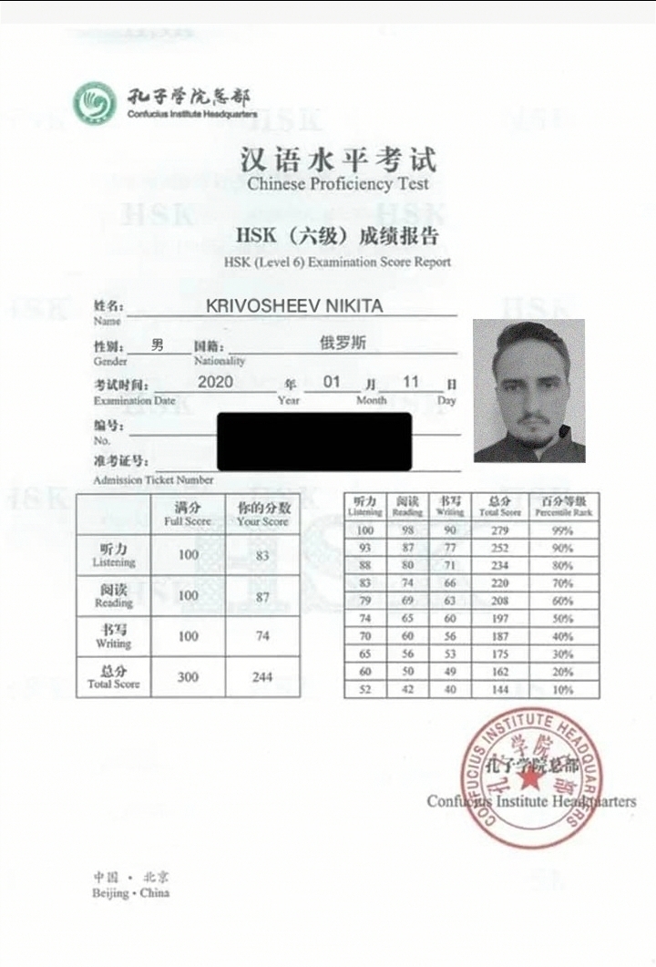 Проживаю в Китае 10 лет. Владею китайским языком на уровне носителя. Получил сертификат HSK6 в 2020 году, с того момента уровень китайского языка вырос в разы.
