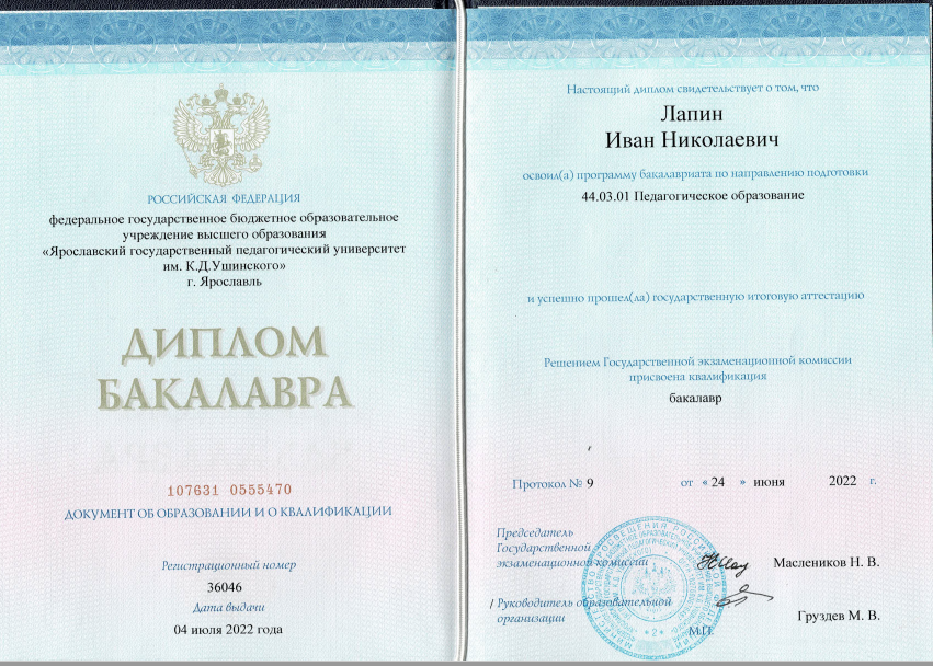 Образование: Ярославский Государственный Педагогический Университет имени К. Д. Ушинского, педагогическое образование, бакалавр, 2022 год.