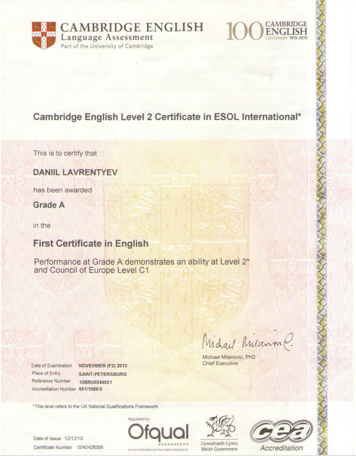 Свободно владею английским языком (С1+), сдавал FCE (A) и IELTS (8.0), преподаю