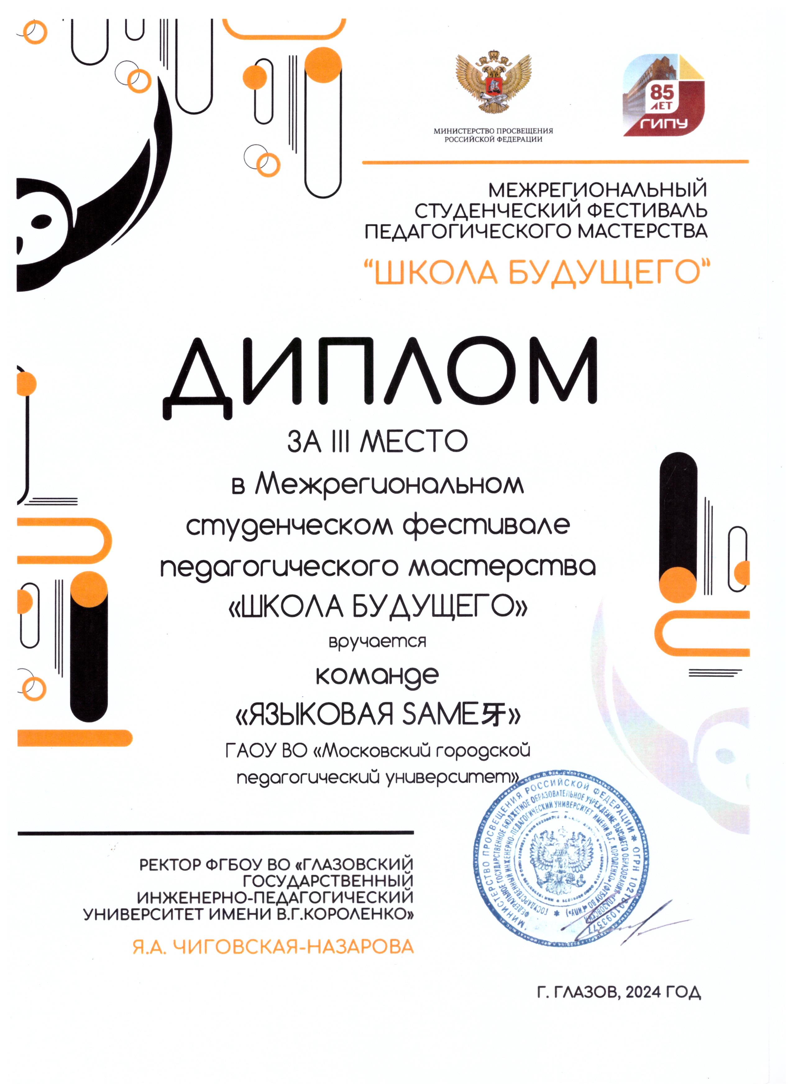 Образование: МГПУ, "Педагогическое образование. Китайский язык", красный диплом, бакалавр, 2025 год.