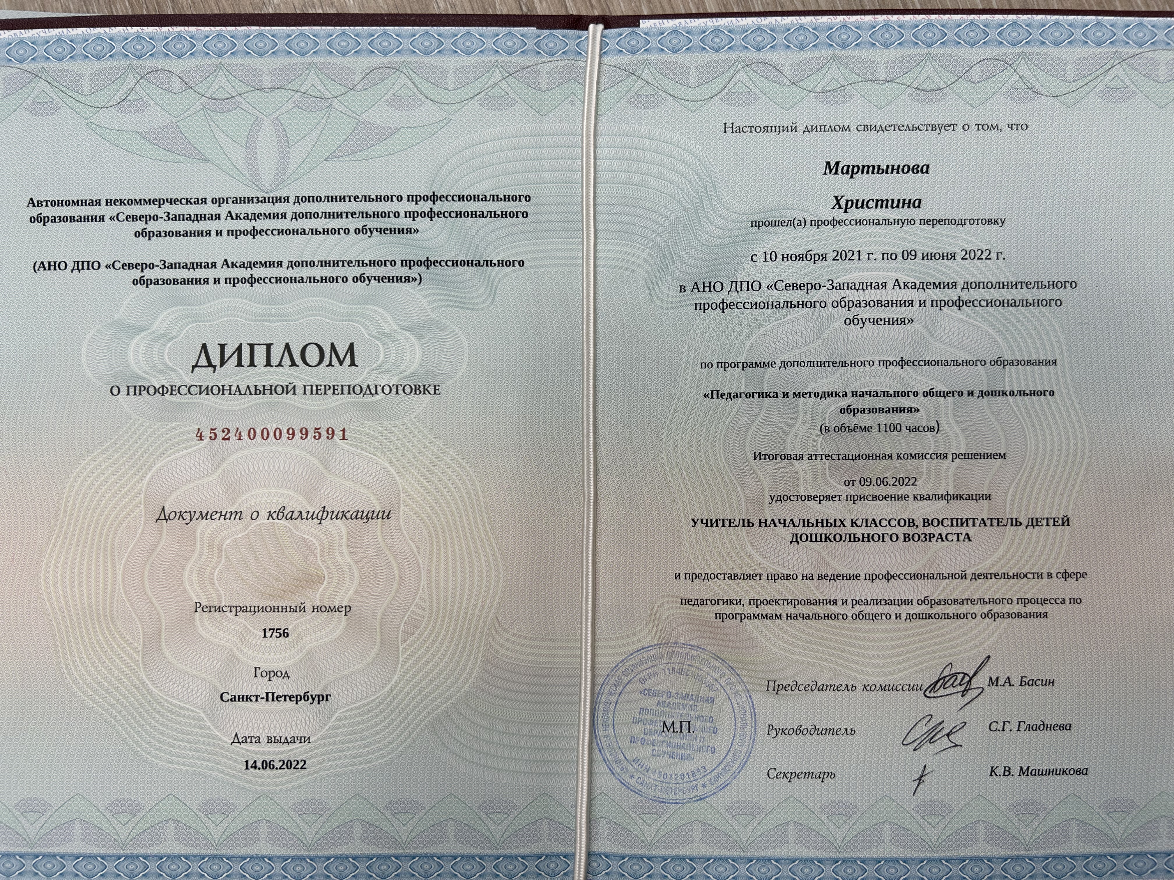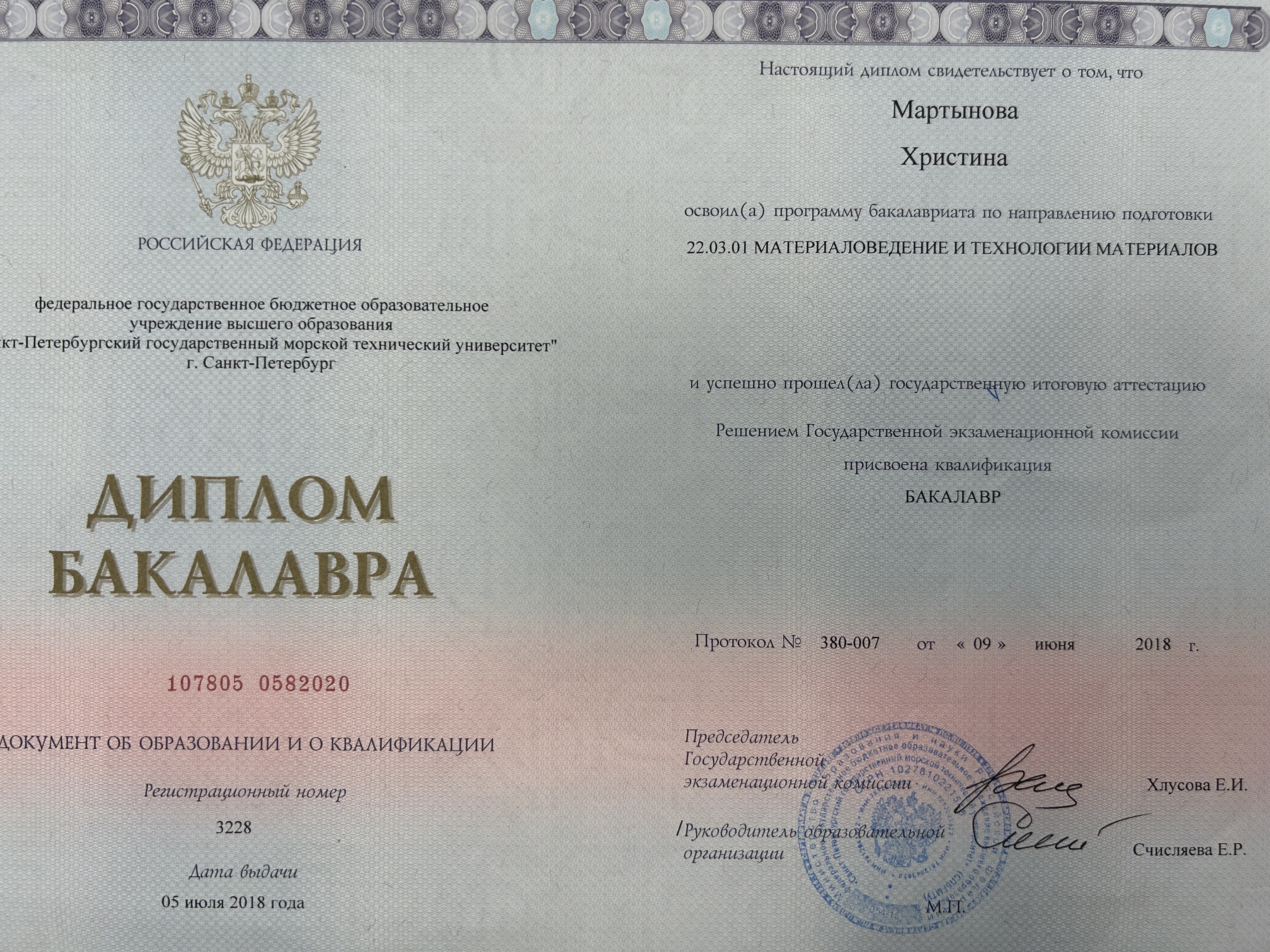 - Образование: Санкт-Петербургский Государственный Морской Технический Университет, материаловедение и технология материалов, бакалавр, 2018 год.