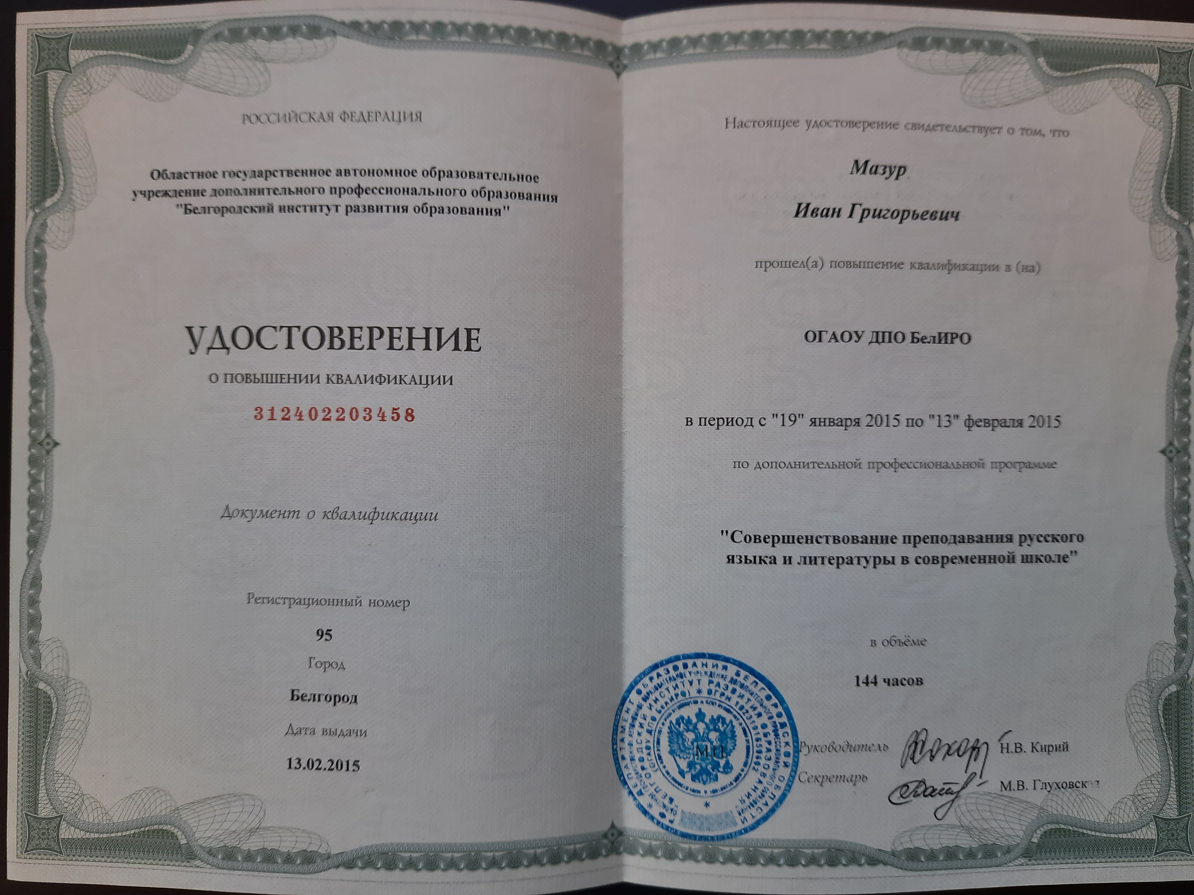 Аспирантура Пензенского Государственного Педагогического Университета имени В. Г. Белинского по специальности "Русская литература", 2009 год.