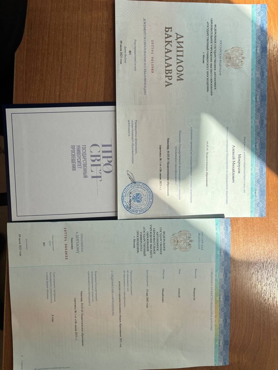 Государственный Университет Просвещения, педагогическое образование, бакалавр, 2025 год.