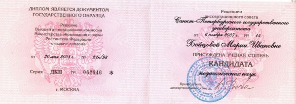 - Образование: СПбГУ, Филологический факультет, закончила в 2003 году, также защитила диссертацию на звание степени кандидата педагогических наук в 2007 году.
