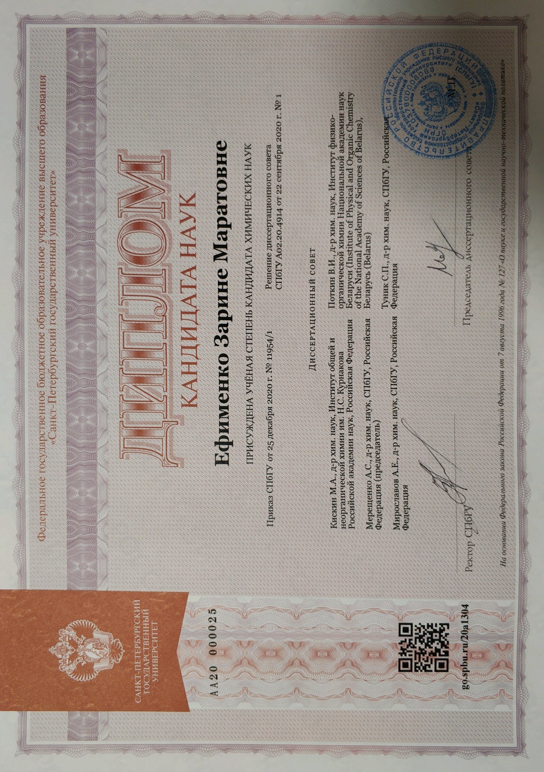 Дополнительная информация: Являюсь кандидатом химических наук с 2020 года.