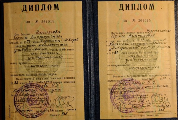 - Образование: Казахский Государственный Университет имени С. М. Кирова (новое название - Казахский Национальный Университет имени Аль-Фараби), математический факультет, преподаватель математики, 1982 год.