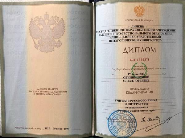 - Образование: Липецкий Государственный Педагогический Университет, филологический факультет, специальность "Учитель русского языка и литературы", специалист, 2006 год.