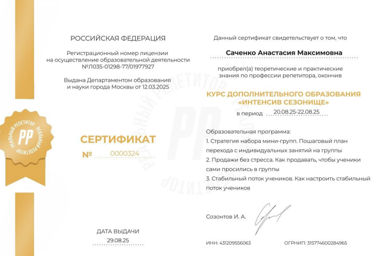 Дополнительная информация: Занятия онлайн (город Москва).