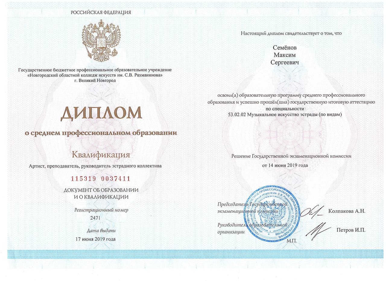 - Образование: Новгородский Областной Колледж Искусств имени С. В. Рахманинова, «Эстрадное пение», 2019 год.