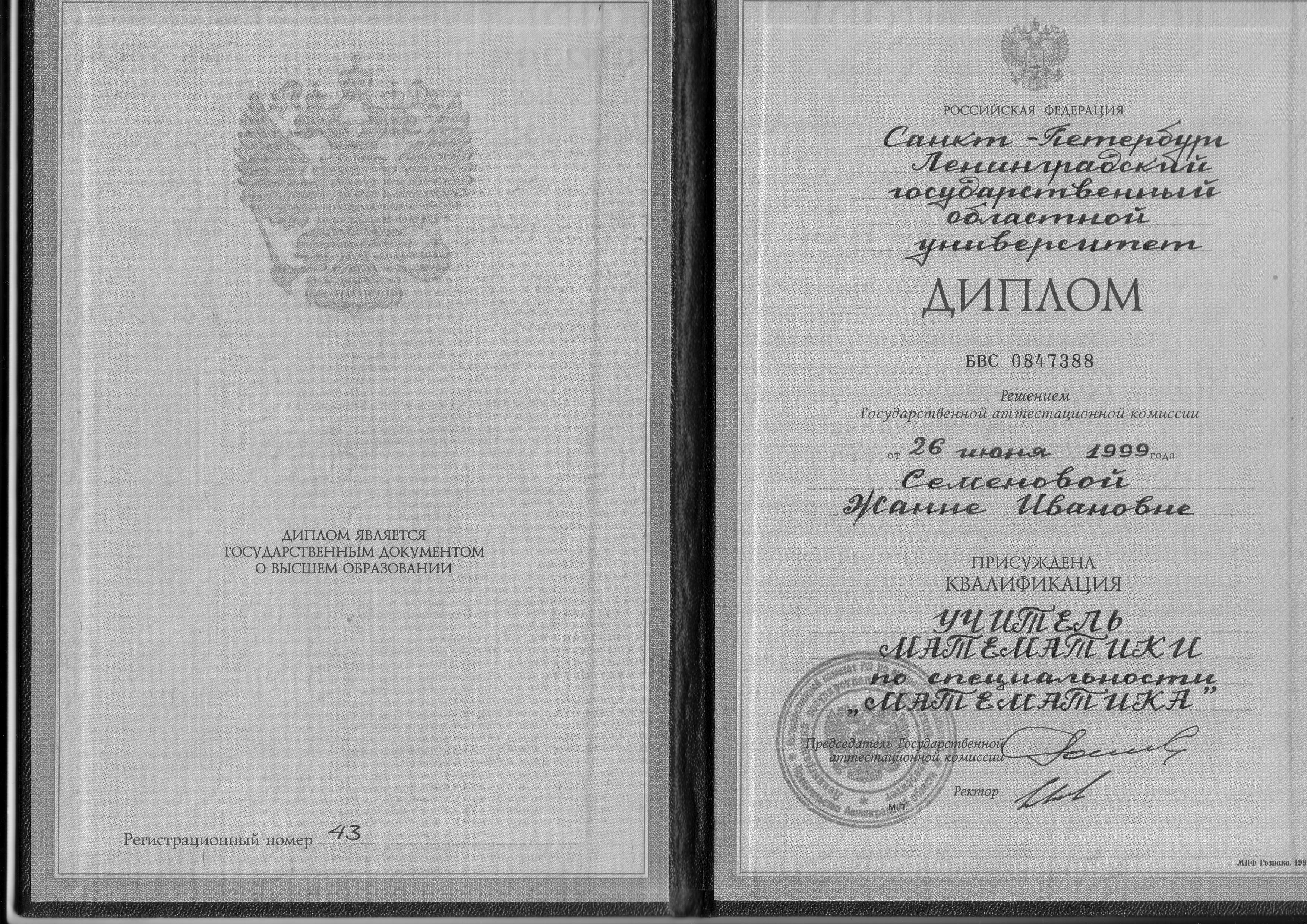 - Образование: Ленинградский Государственный Областной Университет, факультет "Математика, физика и информатика", специалист, 1999 год.