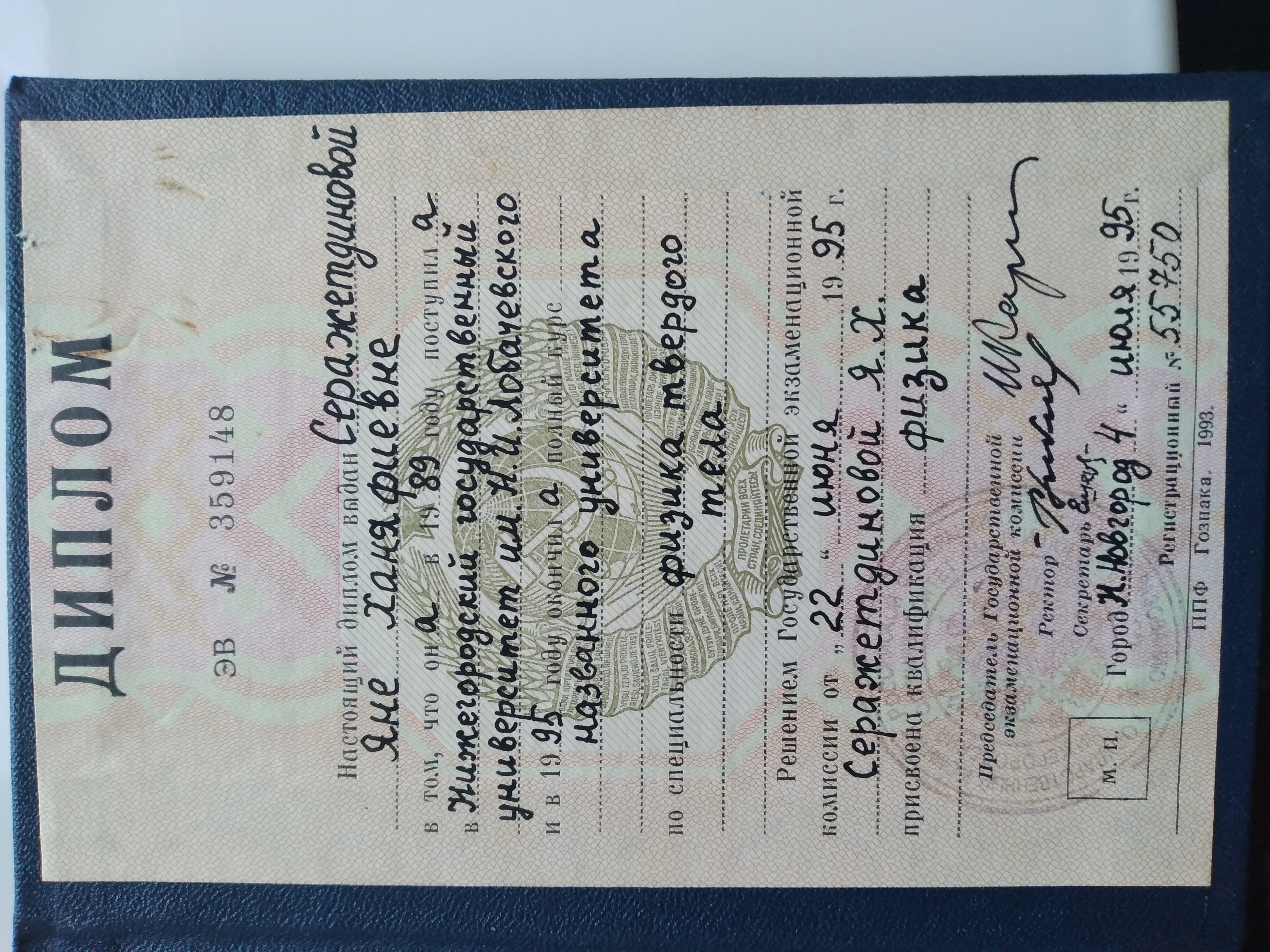 Образование: Нижегородский Государственный Университет имени Н. И. Лобачевского, физика, специалист, 1995 год.