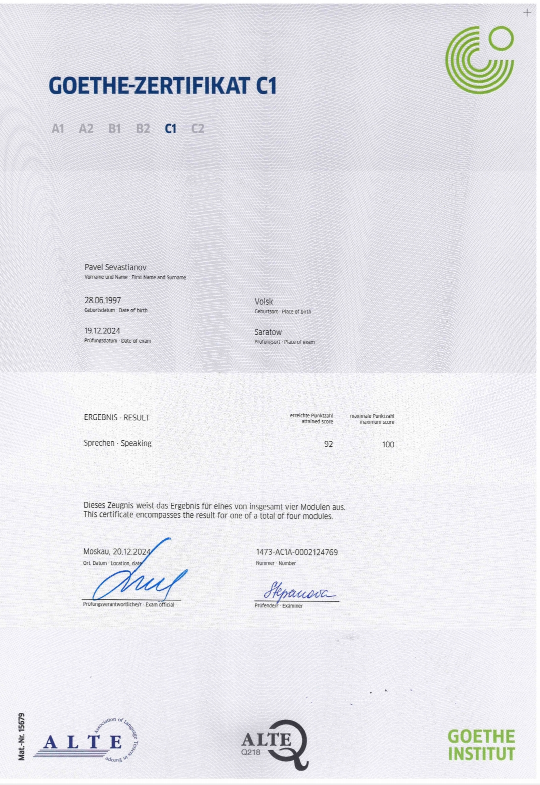 Подстраиваюсь под цели и темп ученика. Готовлю к экзаменам, помогаю систематизировать знания и «разговориться». Все ученики значительно улучшили свою успеваемость и знания, дойдя от начального до среднего и высокого уровней за несколько месяцев занятий. Многие из них сдали такие экзамены как ЕГЭ, ОГЭ, Goethe Zertifikat, DELF, DELE, TELC на высокий балл. В уроках сочетаю проверенные методы и новые подходы, выбираю то, что действительно даёт результат.