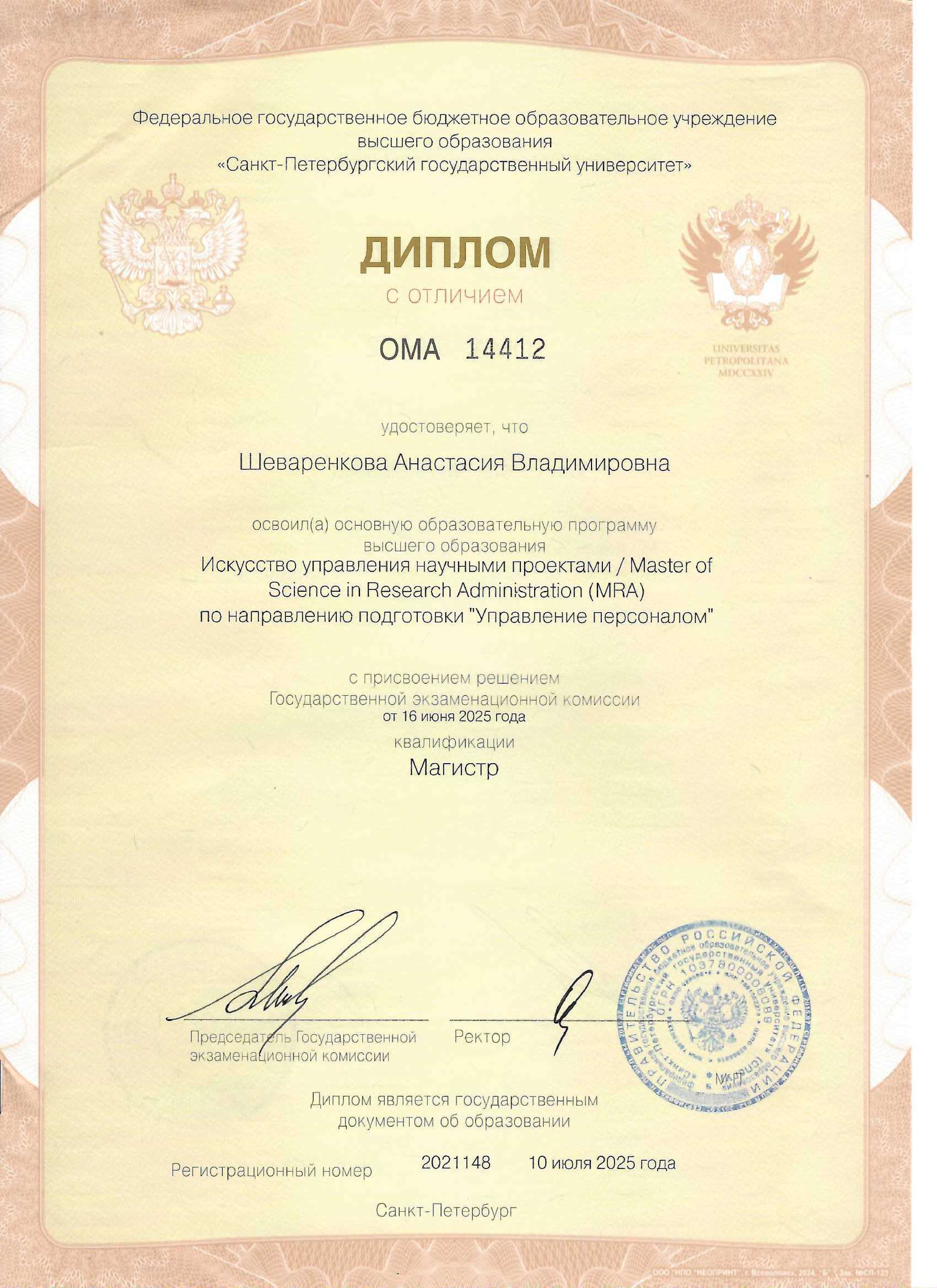 - Образование: Бакалавр Прикладной этики, магистр Управления персоналом, СПбГУ
