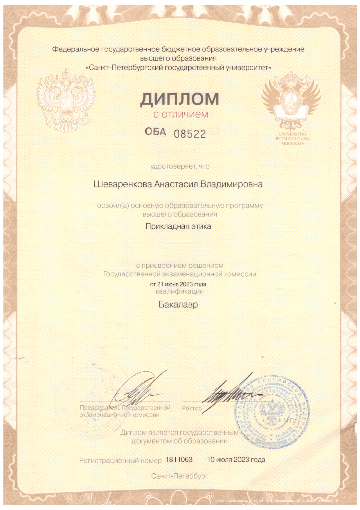 Я окончила бакалавриат в институте философии СПбГУ и магистратуру на экономическом факультете СПбГУ, три года посещала Студенческий клуб Эрмитажа, где углублённо изучала историю архитектуры и искусства. Победитель Перечневой олимпиады по обществознанию, призер Международной студенческой олимпиады по философии 2022 года.