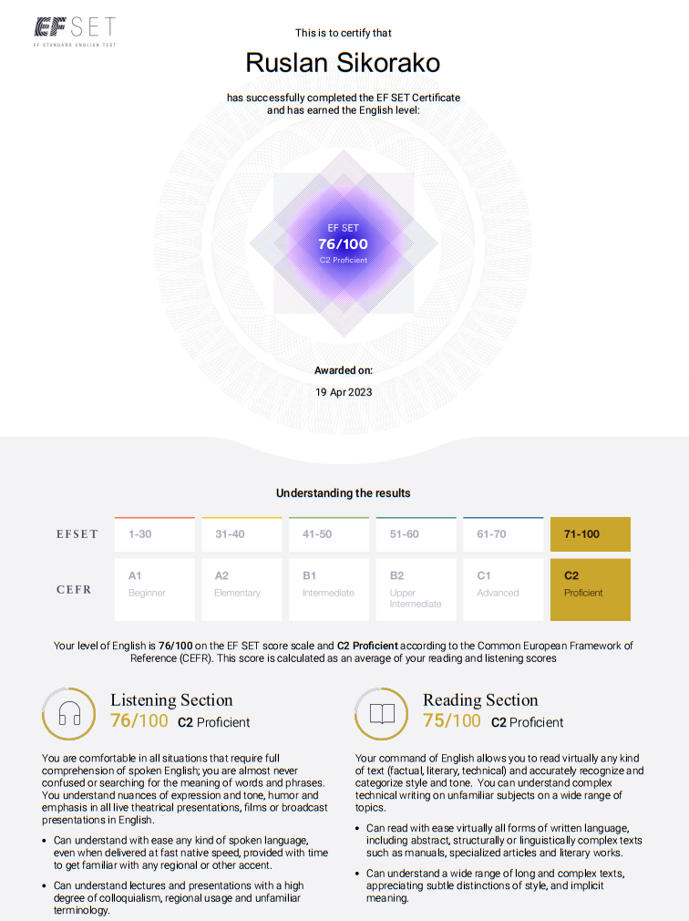 Мой подход к обучению основан на индивидуальных потребностях каждого ученика. Я использую разнообразные методики и материалы, чтобы сделать занятия интересными и эффективными. У меня есть опыт работы как в оффлайн, так и в онлайн-формате, что позволяет мне гибко подстраиваться под график и предпочтения студентов.