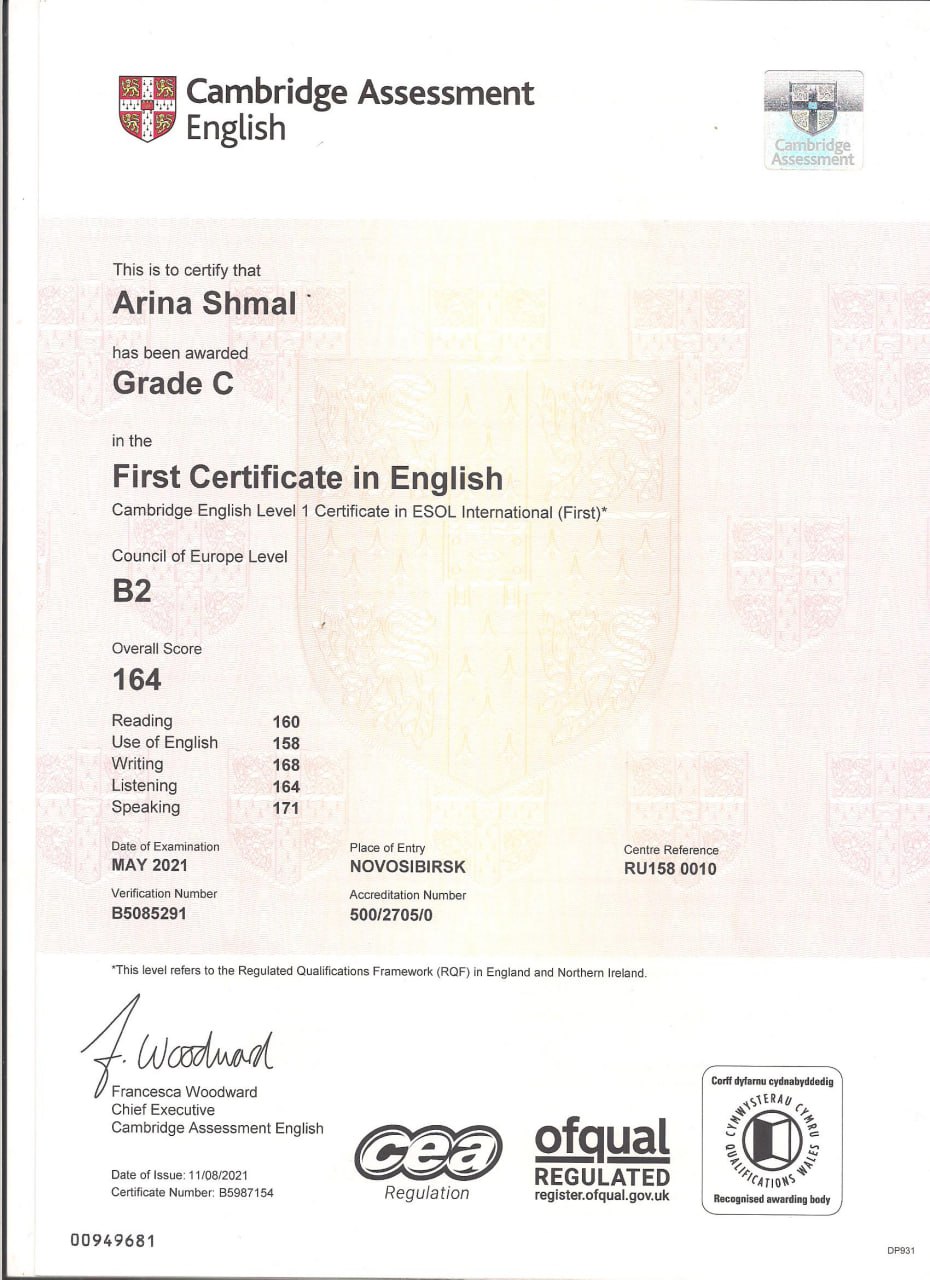 Дополнительная информация: Углубленно изучаю структуру английского языка, что помогает объяснять материал не просто как набор правил, а как живую систему. Сдала FCE (B2), регулярно практикую общение с носителями английского языка, что позволяет преподавать актуальный, живой английский язык.