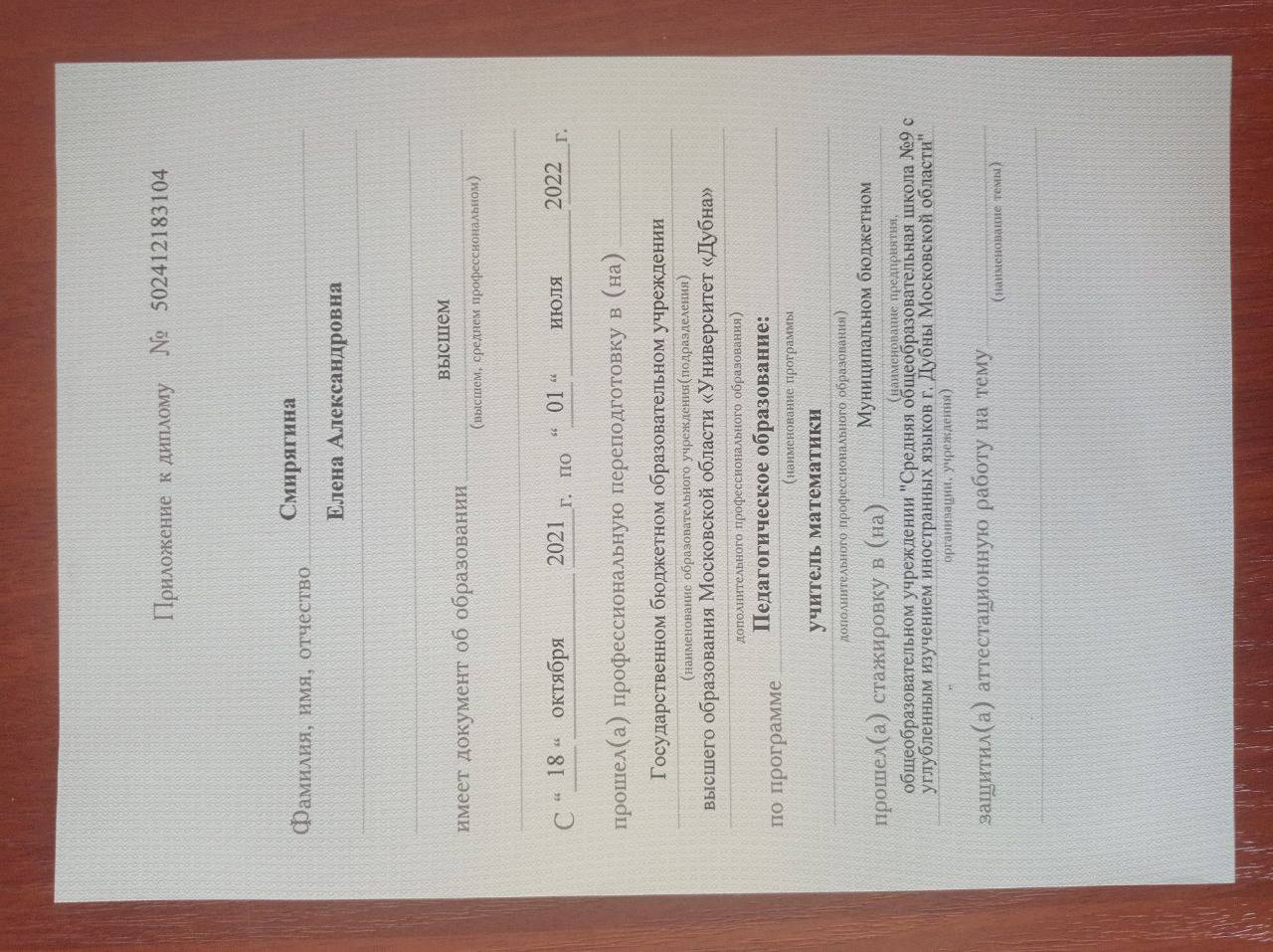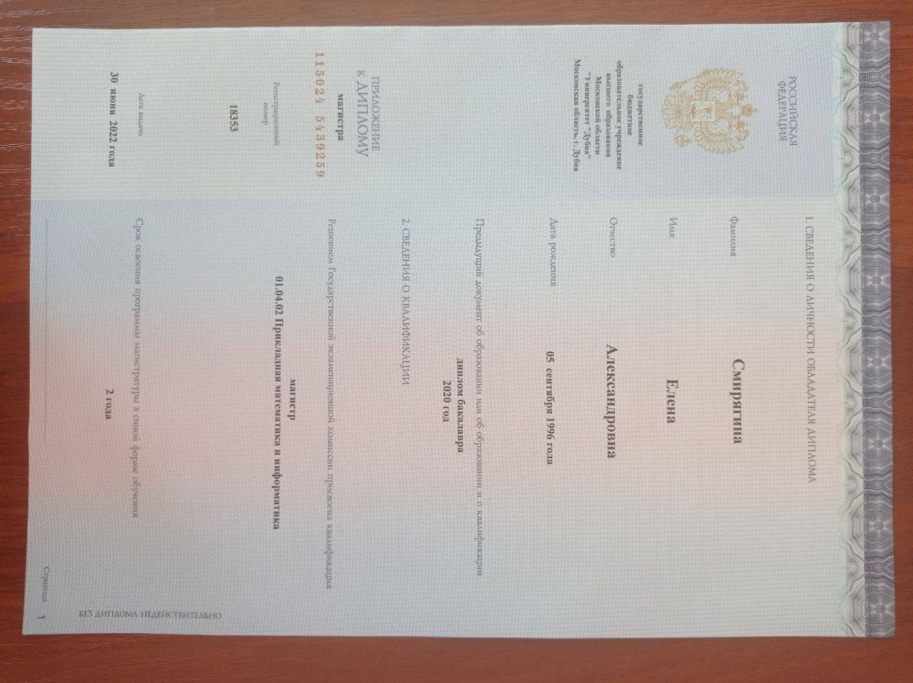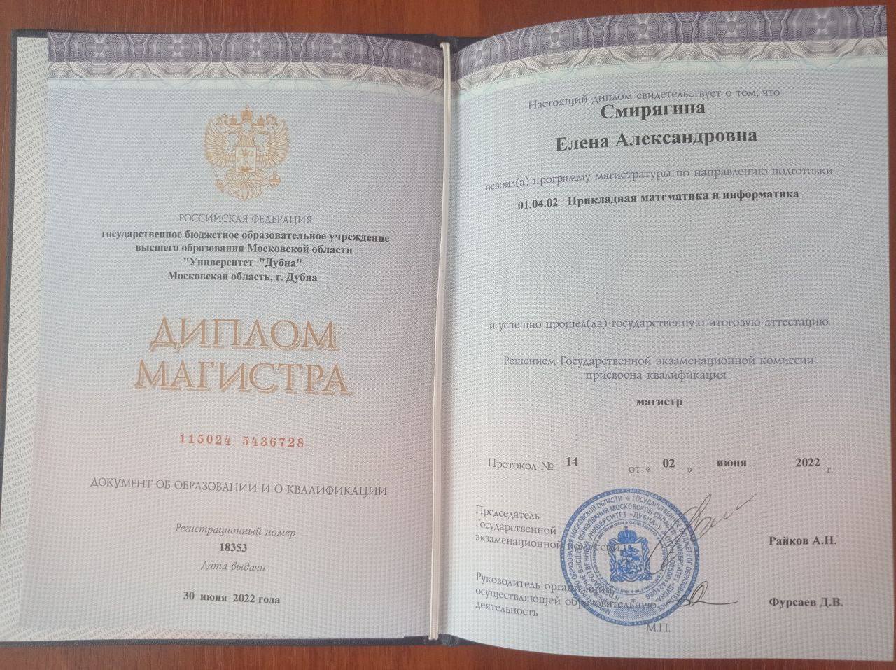 - Образование: Университет Дубна, «Прикладная математика и информатика» (бакалавр 2020 год, магистратура 2022 год).