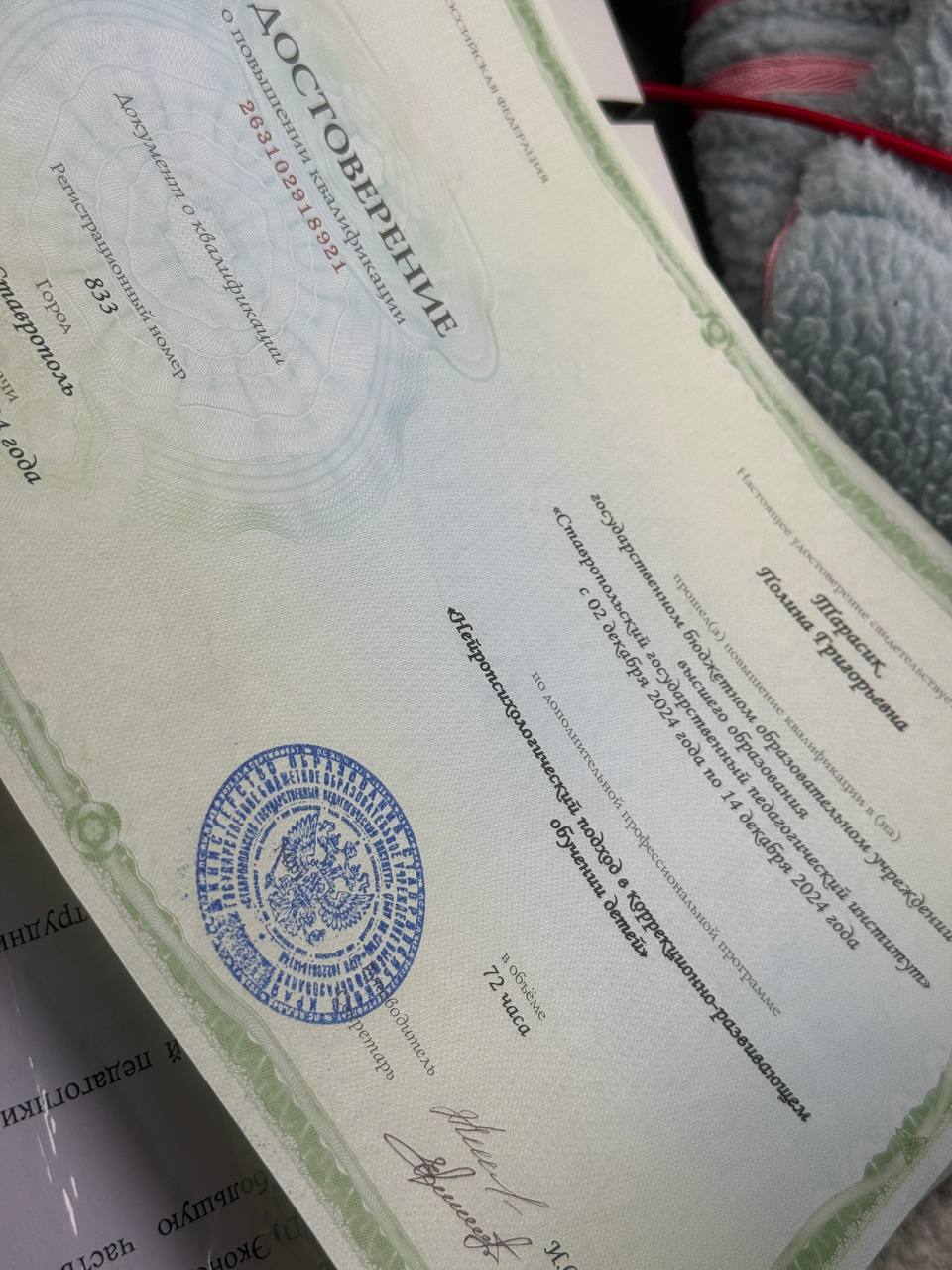Ставропольский государственный педагогический институт, программа «Нейропсихологический подход в коррекционно-развивающем обучении детей»