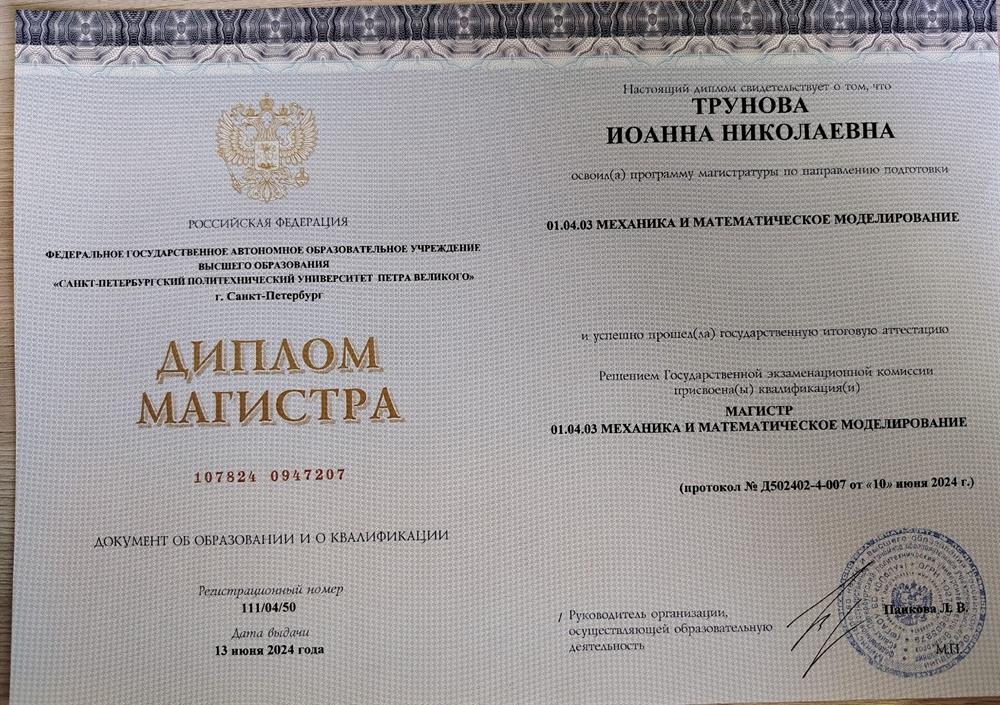 в 2024 окончила магистратуру, СПбПУ (ФизМех)