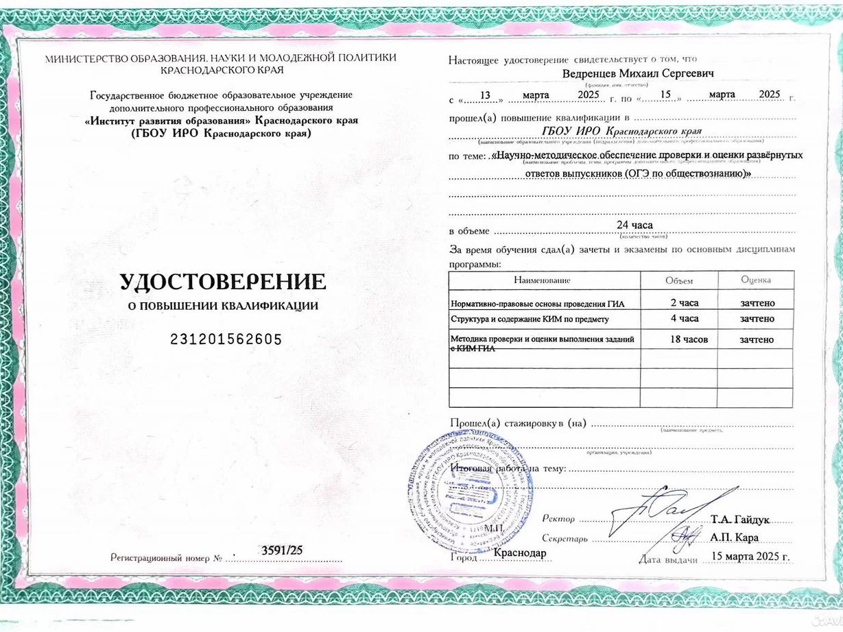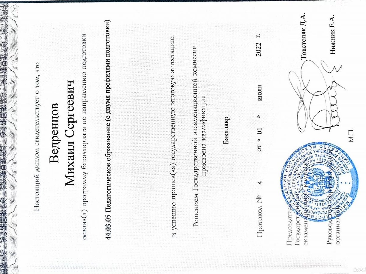 - Образование: Армавирский Государственный Педагогический Университет профильное педагогическое образование (история и обществознание), бакалавр, 2022 год.