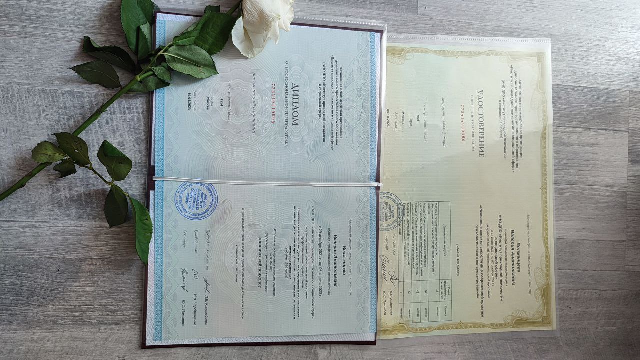 Диплом о профессиональной переподготовке, клиническая психология, 2023 год.