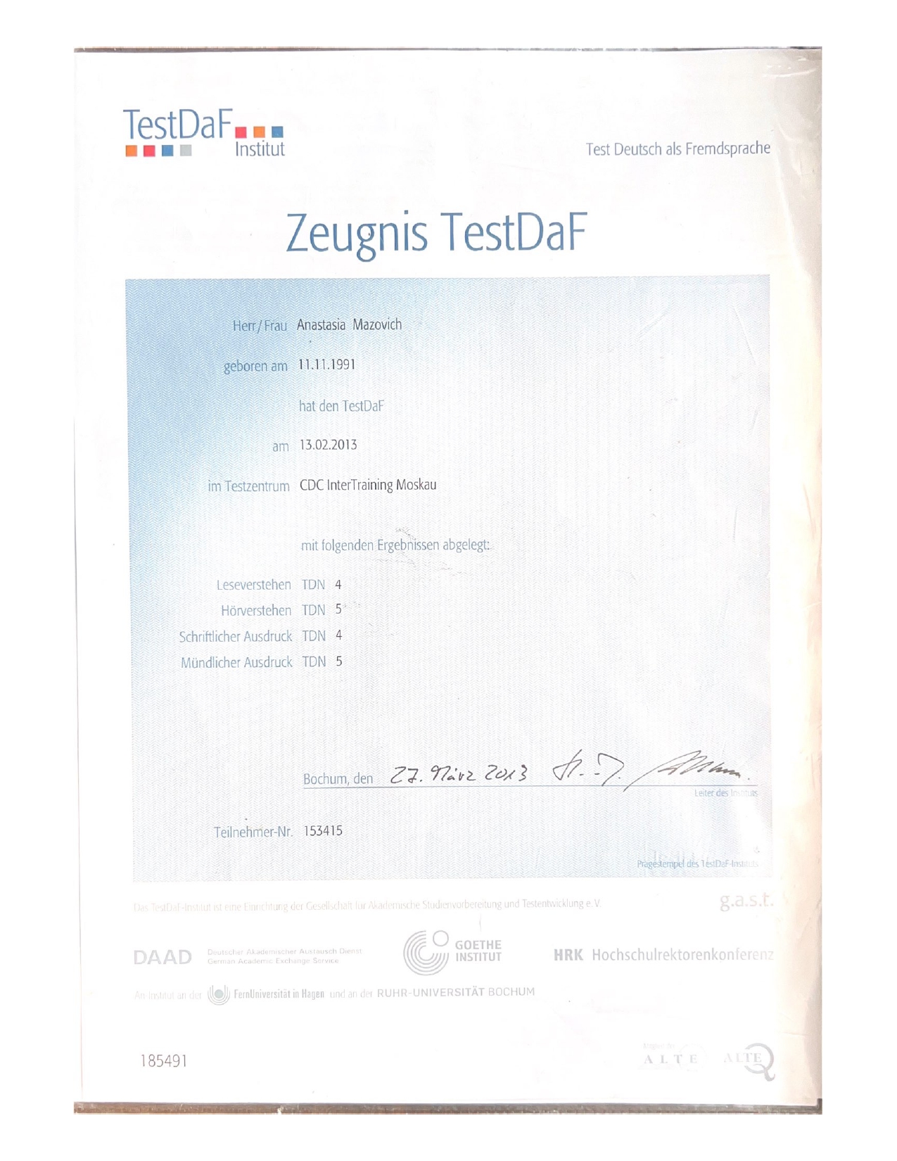 Дополнительная информация: Школа с углубленным изучением немецкого языка. Сертификат С1 - TestDaf.