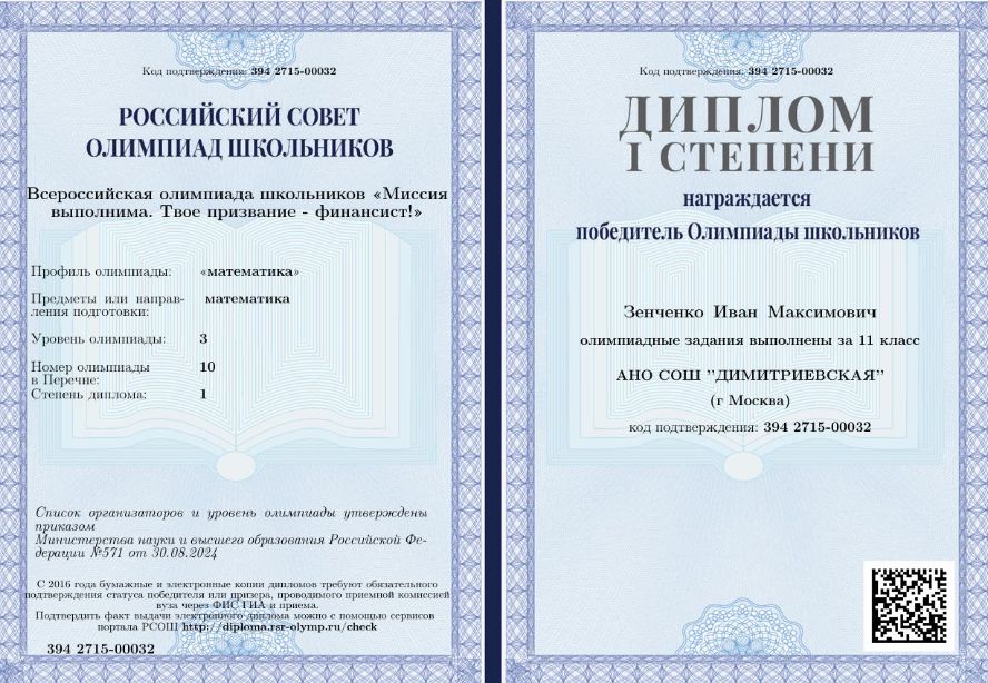 Мои достижения: золотая медаль. ОГЭ на «отлично». 100 баллов за ЕГЭ. Победитель олимпиады по математике Финансового Университета при Правительстве РФ.